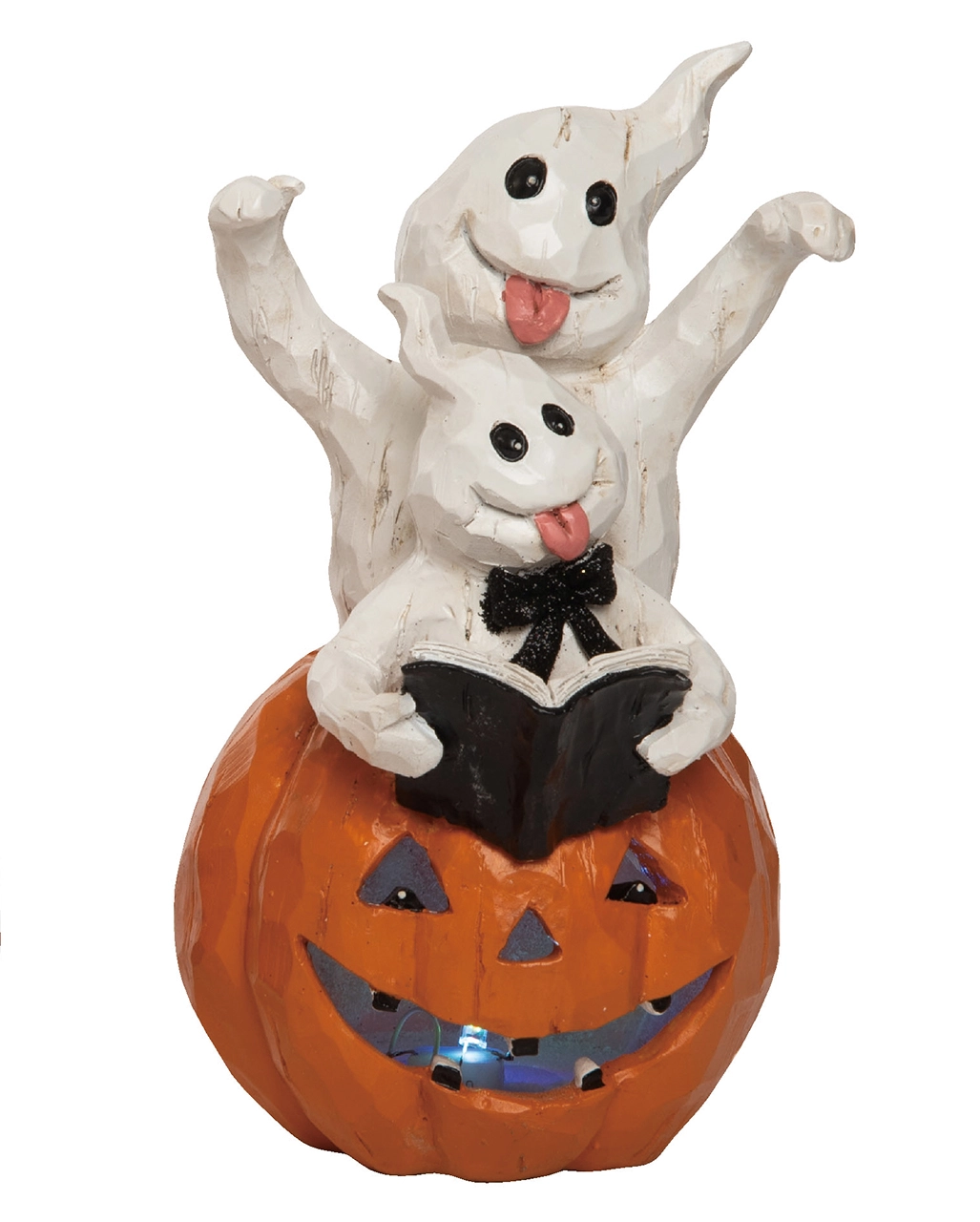 Lieferumfang: 1 x Leuchtkürbis mit Geistern & Buch 22cm