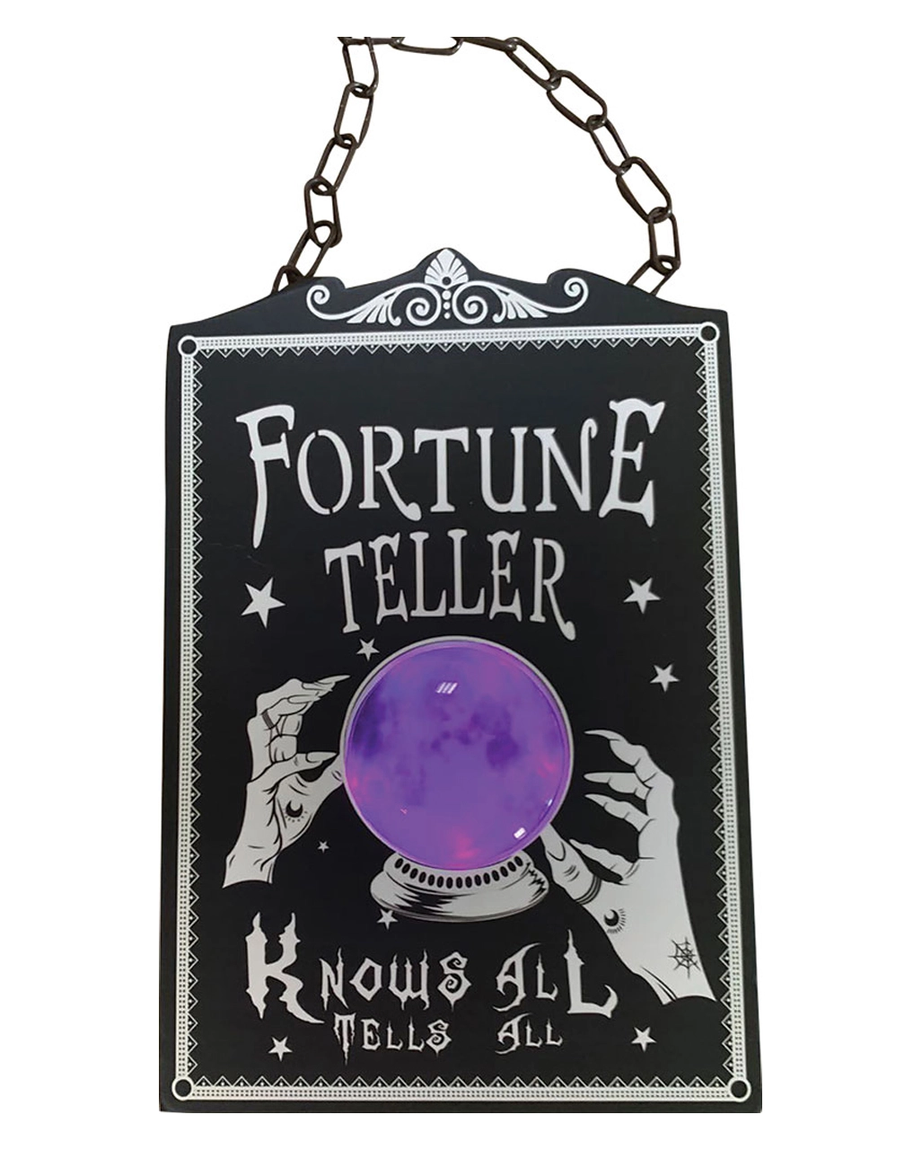 Beleuchtete Gruseldeko trägt zu einer geheimnisvollen Atmosphäre bei und ist ein genialer Effekt, um deine Gäste bei Dunkelheit in Staunen zu versetzen. Das Wahrsage Hinweisschild mit Licht ist ideal für deine nächste Halloween-Party! Die violett leuchtende Kristallkugel weist deinen magischen Besuchern den Weg. Befestige die Halloween Wanddeko im Eingangsbereich, im Partykeller oder wo immer du ein magisches Licht gebrauchen kannst!